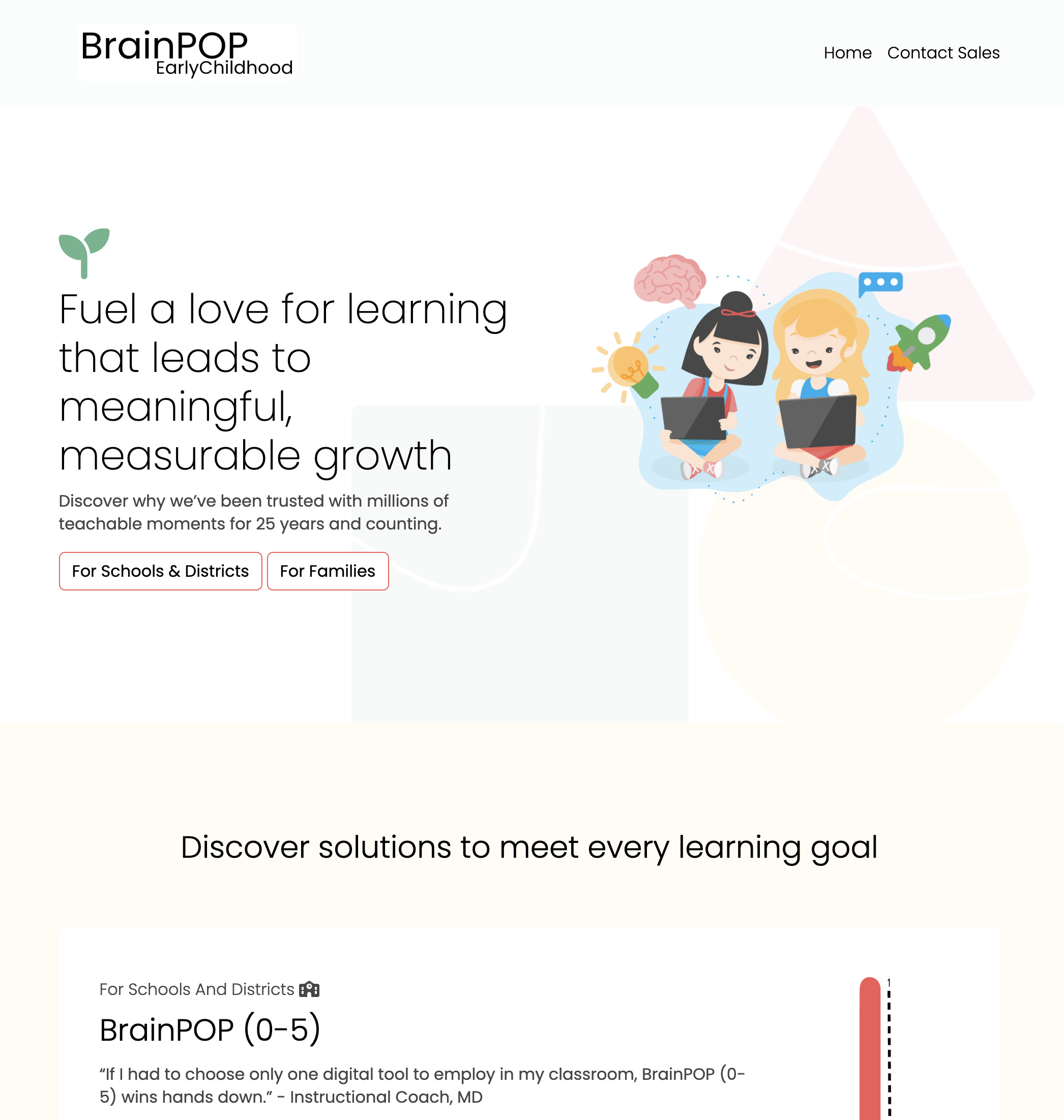 I created a design inspired by BrainPOP, a popular educational website for children tailored for early childhood education.