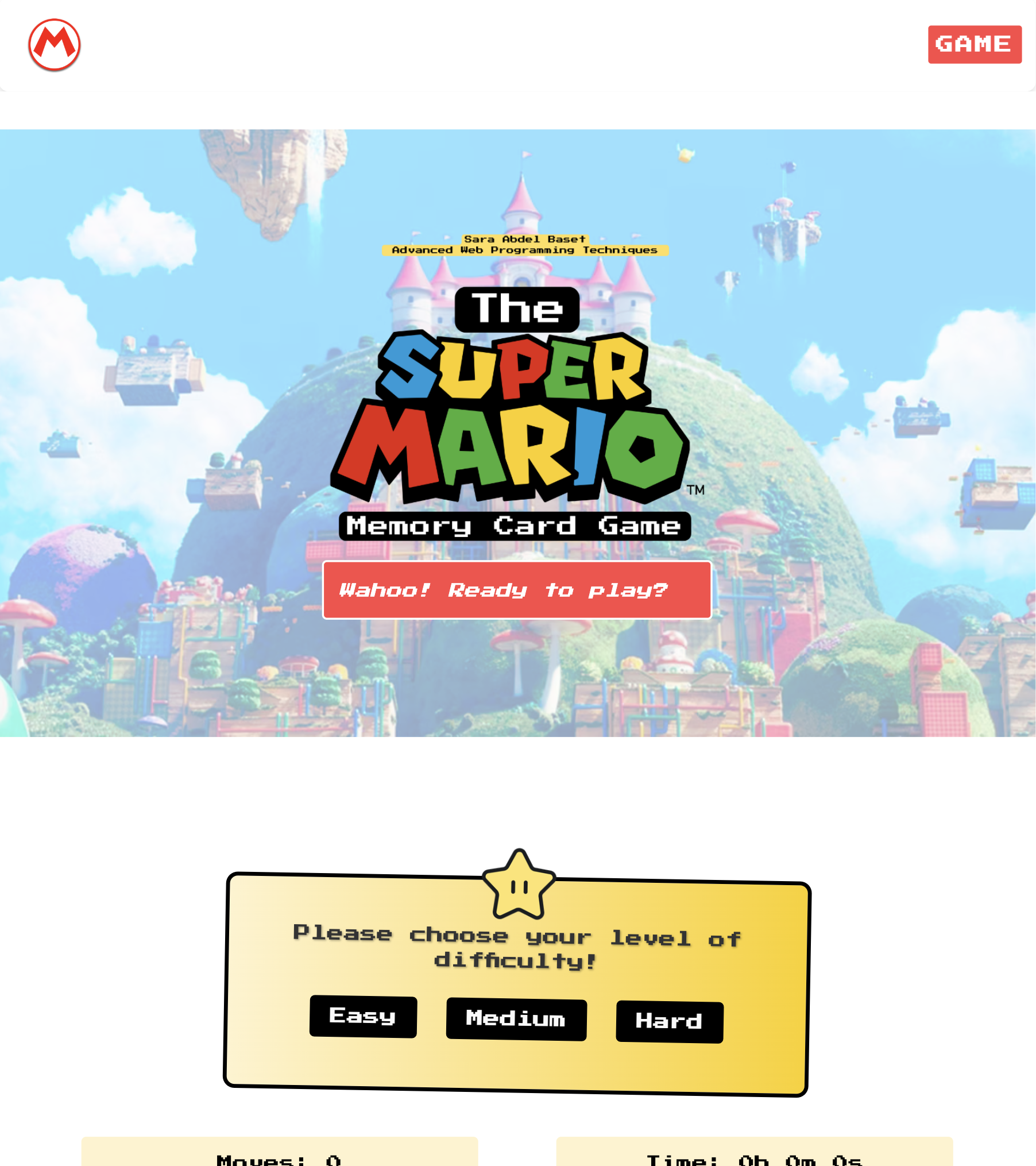 Developed a Mario-themed memory card game using React to create an interactive, engaging, and fun user experience.The goal is to remember where the matching cards are located and flip them over in pairs to win.